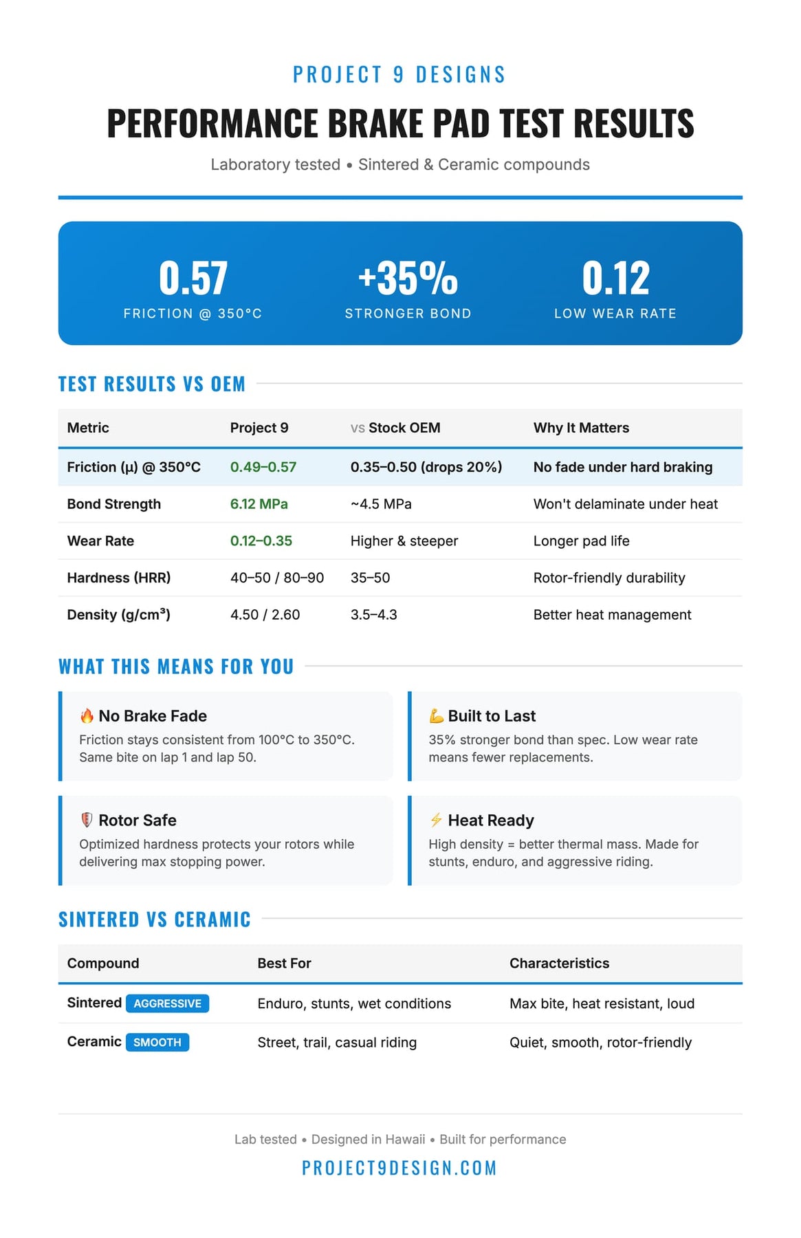 Project 9 designs brake pads for surron light bee sintered compund