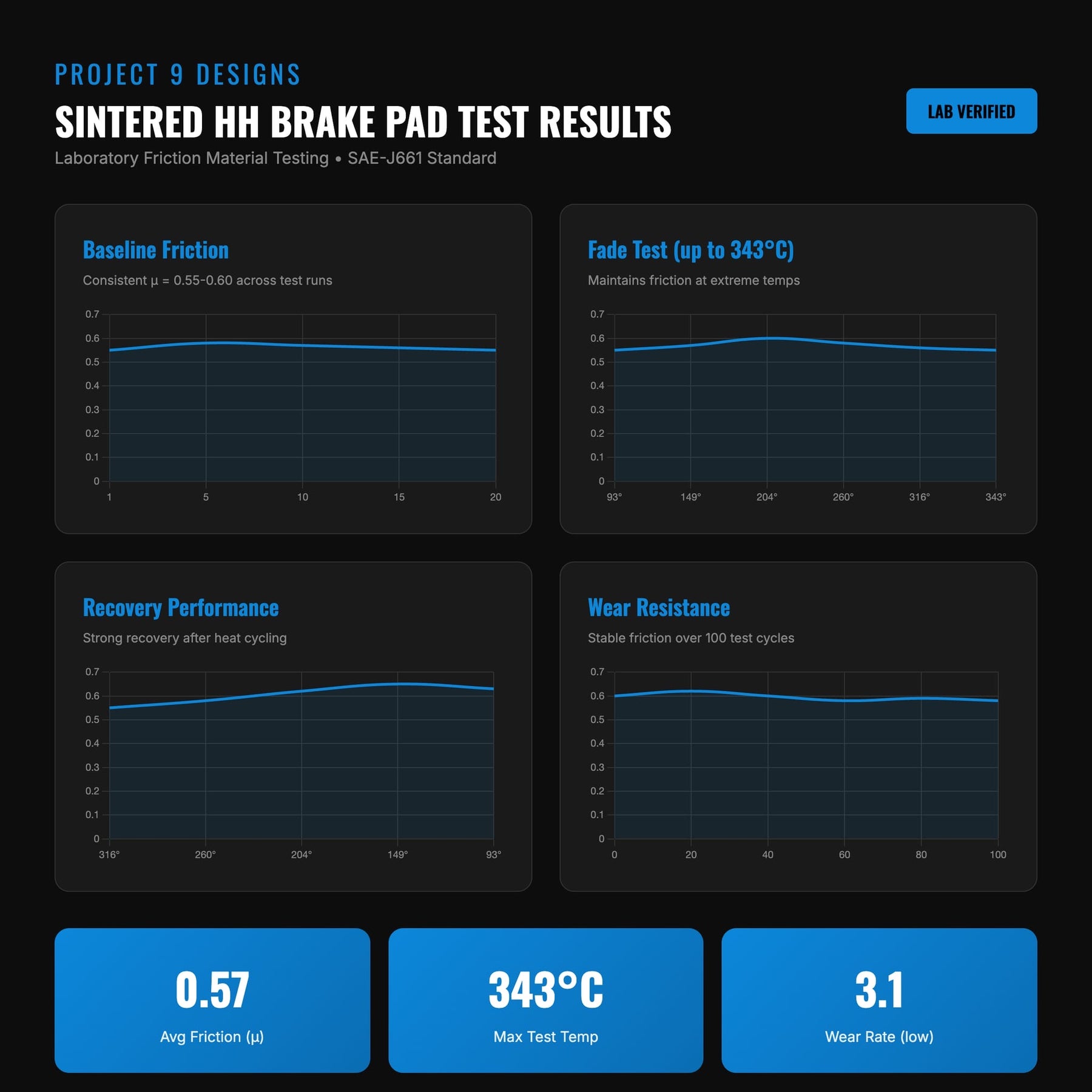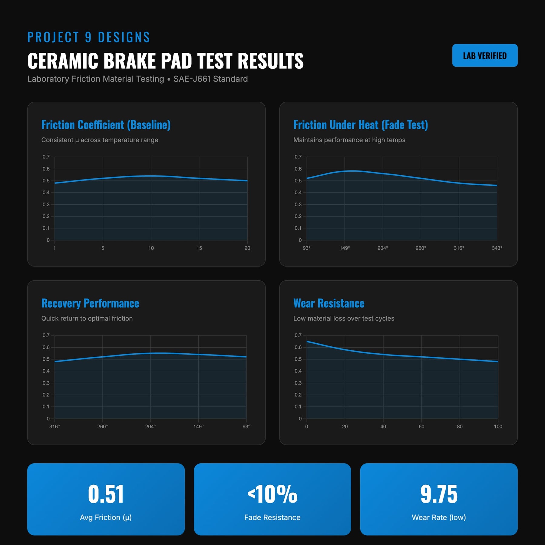 4. Stable Performance: Consistent braking under moderate temperatures and conditions.
